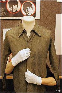 پيراهن جان لنون، خواننده و آهنگساز بريتانيايی و از پايه گذاران گروه موسيقی بيتل ها در حراجی کريستی لندن برای فروش به نمايش گذاشته شده است. انتظار می رود که اين پيراهن تا 12 هزار پوند بريتانيا به فروش برسد. |