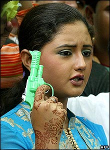 نونی، نوزاد فيلی که چهار روز پيش در در باغ وحشی در جاوای غربی اندونزی به دنيا آمد. در اين منطقه خروج دود از قله "مراپی" هنوز ادامه دارد و به گفته مقامات، احتمال آتشفشانی اين قله تهديدی برای ساکنان منطقه است. |