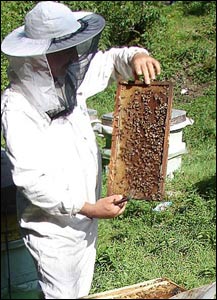 دستهای بدون دستکش او را نگاه کنيد! میگفت: در همين چند ثانيه حداقل ۱۰ بار نيش خورده، ولی بعد از سالها، ديگر اين نيشها برايش نوش است!