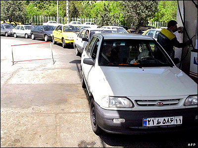 رانندگان در شمال تهران در نزديکی يک دستگاه فروش بنزين صف کشيده اند. وزير نفت ايران، گفته است که واردات بنزين از اول مهرماه - سه ماه ديگر - متوقف و اين کالا جيره بندی خواهد شد.