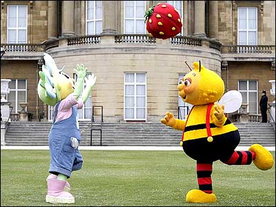 دو قهرمان برنامه های تلويزيون برای بچه ها در قصر باکينگام در مراسم سالانه جشن بچه ها. اين جشن همه ساله با حضور اعضای خانواده سلطنتی در لندن برگزار می شود