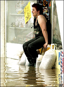 يک زن در مقابل خانه اش در شهر راب اتريش، نزديک مرز جمهوری چک. ريزش شديد باران در اين ناحيه باعث سرازير شدن سيلاب شده است.