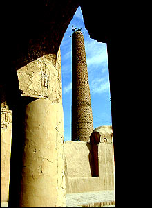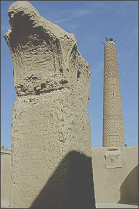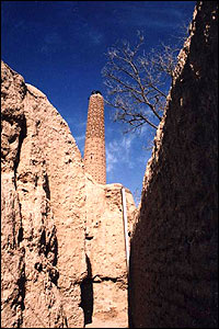 تصوير مناره و ستونی ويران از مسجد تاری خانه