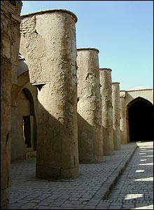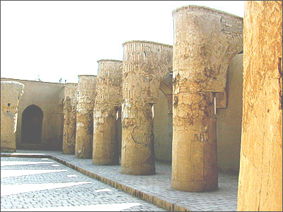 تقريبا تمام سقفهای بالای ستونها ريخته است چون از خشت و گل بودنداما ستونها آجری همچنان ايستاده اند.