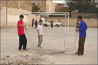 زمين فوتبال بچه ها در ری، امکانات تفريحی در ری زياد نيست ولی با همين امکانات کم اين شهر قهرمانان ورزشی زيادی داشته است.