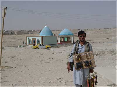 عکسهای زير از شهر تاريخی غزنی در افغانستان را کاميلا، از خوانندگان صفحه صدای شما فرستاده است. نمای بيرونی مقبره سنايی غزنوی، شاعر فارسی زبان. نمای بيرونی مقبره سنايی غزنوی. اين مرد سالهاست که در زيارتگاه چشمه شفا در غزنی خدمت می کند. مرد جوان دست فروش در مقابل يکی از زيارتگاههای شهر غزنی، به دوربين من چشم دوخته است. زيارتگاه موی مبارک يکی از مکانهايی است که مردم برای طلب حاجت به آنجا می آيند.