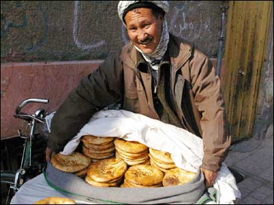 مرد افغانی که نان ازبکی را در تنوری که در خانه ساخته با همسرش تهیه می کند می گوید که مشتریان او تنها افغانها نیستند.