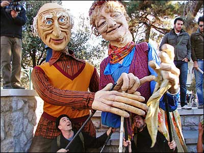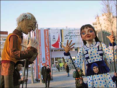 عروسک گردان های فرانسوی عروسک های بزرگ چهار متری را با موسيقی محلی ايرانی می رقصانند.