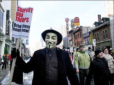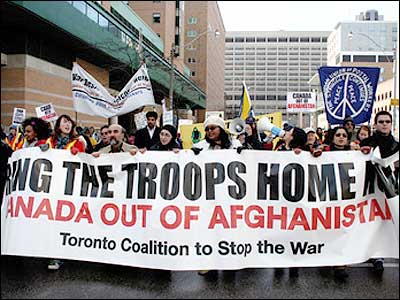 روز یکشنبه 18 مارس در چهارمین سالگرد آغاز جنگ در عراق، هزاران تن در تظاهرات ضد جنگ در خيابانهای تورنتو در کانادا شرکت شرکت کردند. شرکت کنندگان در این تظاهرات خواستار خروج نیروهای نظامی خارجی از عراق شدند و همچنین مخالف خود را با حمله احتمالی به ايران ابراز کردند.عکسهای زیر را پویان از این تظاهرات برای صفحه صدای شما فرستاده است.