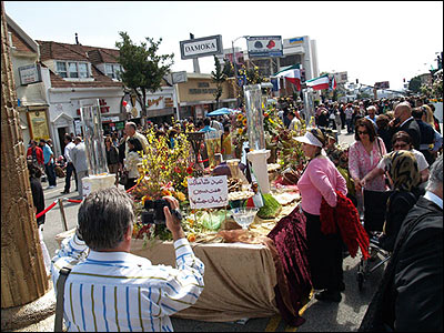 در سوی ديگر چهارراه سفره هفت سين بزرگی بر پا شده بود که توجه بسياری از مردم را به خود جلب می کرد.