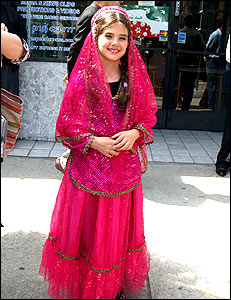 رستم خواننده تاجيکی به همراه دختران کوچکی که لباسهای سنتی بر تن کرده بودند در روی جايگاه برنامه اجرا می کردند.
