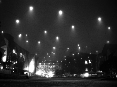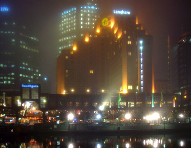 چراغ های گرم شهر، در هوای سرد مه گرفته