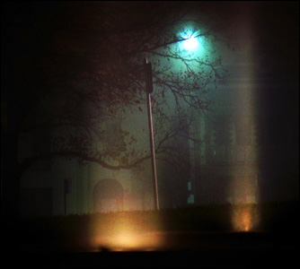 مه باعث شده که نور معمولی چراغ ها وهم آلود به نظر رسد