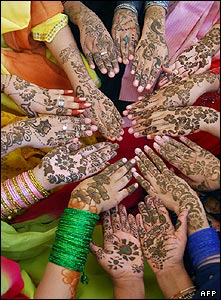 دختران پاکستانی با دستان حنا بسته در روز اول عيد