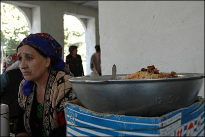 "زن فروشنده در بازاری در خاروغ. او در زمان اتحاد شوروی سابق پرستار بود. او می گويد خدمات بهداشتی ديگر به آسانی در دسترس نيست."