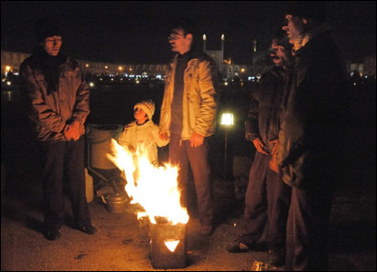 میدان نقش جهان و درشکهچیهایی که مشغول گرم کردن خود هستند.