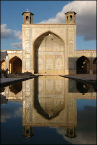 مسجد وکیل شیراز در یک روز زمستانی؛ نیکولا می گوید: "بیشتر مساجدی که من دیدم در دست مرمت بود و در این مسجد همه سنگ های بزرگ کف آن در حال تعویض شدن بود."