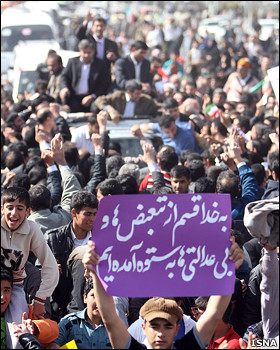 در جریان سفر محمود احمدی نژاد، رئیس جمهوری ایران، به شهر خرم آباد، مرکز استان لرستان، عده ای از حاضران در مراسم استقبال و سخنرانی، پلاکاردهایی با مضامین اعتراضی در دست داشتند.
