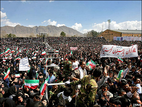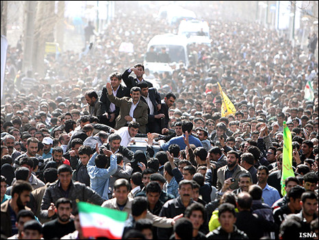 در حالی که آقای احمدی نژاد اخیرا گفته بود که ایران تنها کشوری است که در آن گرسنه وجود ندارد، روی پارچه نوشته ای که گروهی از حاضران در سخنرانی او در خرم آباد در دست گرفته اند، نوشته شده است: "ما کارگران پارسیلون گرسنه ایم".