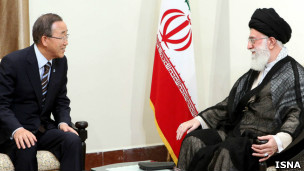 آقای بان نیز در دیدار با آیت اله خامنه ای نیز گفت که او به این دلیل به تهران آمده است که به "قدرت گفت و گو" اعتقاد دارد.