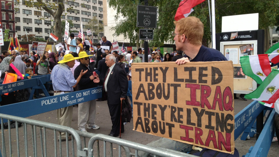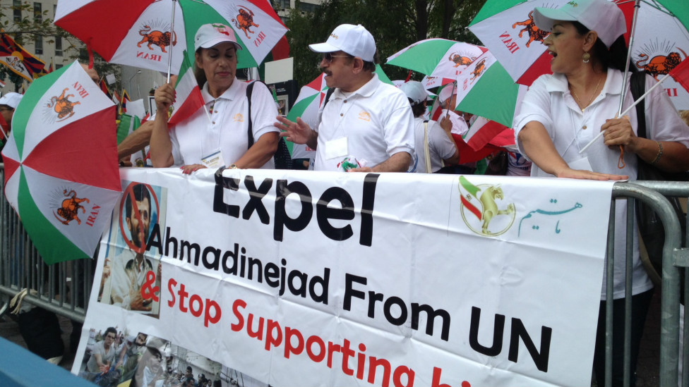 در هنگام سخنرانی رئیسجمهوری ایران، عدهای در برابر مقر سازمان ملل علیه او و حکومت ایران دست به تظاهرات زدند.
