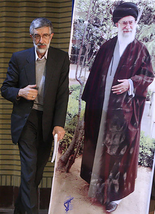 مجتبی خامنهای، نفر وسط، پشت سر رهبر ایران