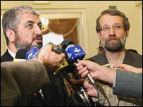 آيت الله علی خامنه ای رهبر جمهوری اسلامی ايران از گروههای مبارز فلسطينی خواسته است تا به نبرد مسلحانه با اسرائيل ادامه دهند. تلويزيون دولتی ايران به نقل از آقای خامنه ای گفت که تجربه 50 سال گذشته نشان داده است که سازش و مذاکره با اسرائيل وضعيت فلسطينيان را بهبود نبخشيده است. آقای خامنه ای گفت که پيروزی تنها از طريق مقاومت به دست خواهد آمد. رهبر ايران اين اظهارات را در ديدار با خالد مشعل يکی از رهبران گروه فلسطينی حماس در تهران بيان کرد. در عين حال، به گزارش خبرگزاری جمهوری اسلامی، ايرنا، علی لاريجانی دبير شورايعالي امنيت ملي ايران در ديدار با خالد مشعل گفته است جنبش حماس با روش دموكراتيك بدنبال استيفای حقوق ملت فلسطين است. خالد مشعل خود نيز در گفتگو با خبرنگاران گفت: جنبش حماس در كنار عمليات مقاومت، مايل است از روشهای ديپلماتيك برای احقاق حقوق ملت فلسطين استفاده كند ايران و ادامه جنگ سرد با اسرائيل اظهارات رهبر ايران تازه ترين نمونه از يک رشته اظهارات ضداسرائيلی است که مقامات بلندپايه ايران در هفته های اخير مطرح کرده اند.