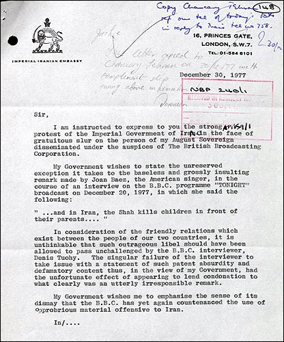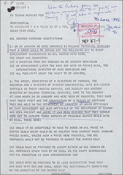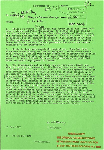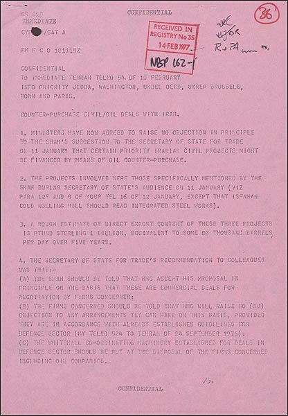 آرشیو ملی بریتانیا طی دو روز در نیمه دسامبر سال 2007 همانند سال های گذشته، در آستانه بازگشایی، پرونده های محرمانه خود را در اختیار شمار محدودی از محققان و روزنامه نگاران داخلی و خارجی قرار داد. نمونه هایی از اسنادی که در تهیه مطالب برای سایت فارسی بی بی سی از آنها استفاده شده را اینجا می بینید: