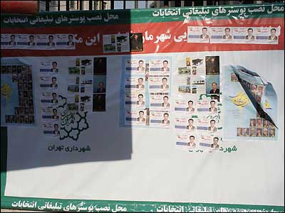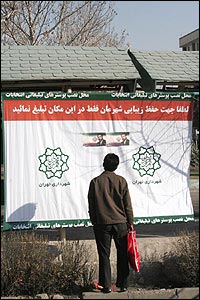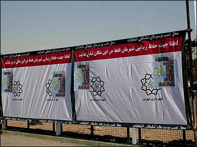تبلیغات انتخابات مجلس ایران که از دو روز پیش آغاز شده محدود به بیلبوردهای بزرگ تبلیغاتی است که در برخی مناطق پرتردد شهر نصب شده است. این بیلبوردها عمدتا از سوی جناح های سیاسی نصب شده که مردم را به شرکت در انتخابات تشویق می کنند. معدود نامزدهای انتخاباتی در سطح شهر تهران که نزدیک به 870 نامزد در این شهر برای 30 کرسی رقابت می کنند، ستادهای تبلیغاتی راه انداخته اند. شهرداری تهران تابلوهایی را برای تبلیغات نامزدها در نظر گرفته اما اکثر این تابلوها خالی است.