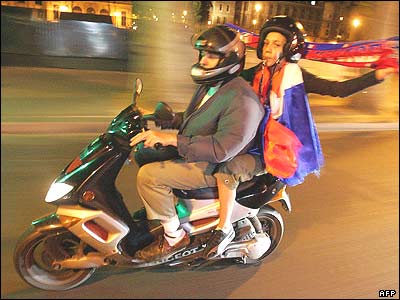 يکی از طرفداران تيم ملی فرانسه راه يافتن تيم ملی کشورش را به مسابقه نهايی فوتبال جام جهانی جشن گرفته است.