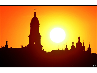 نمايی از کليسای هزار ساله، در غروب کيف، پايتخت اوکراين.