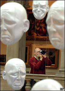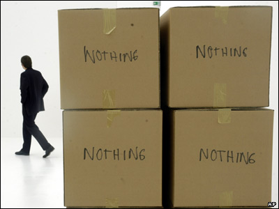 بازديد کننده ای در نمايشگاه هنری 'نيستی' در موزه شيرن فرانکفورت آلمان از کنار چيدمان 'جعبه های نيستی' اثر اشتفان بروگمان، می گذرد.