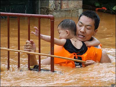 مامور آتش نشانی کودکی را از غرق شدن در سيلی که در ايچون در کشور چين اتفاق افتاد نجات می دهد. هر ساله در تابستان در بخش های بزرگی از چين سيل به راه می افتد.