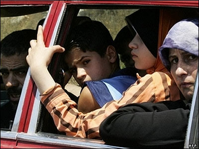 با گسترش عمليات زمينی اسرائيل در خاک لبنان، يک خانواده لبنانی به سرعت در داخل اتومبيلی جا گرفته، تا هرچه زودتر شهر بنت جبيل در جنوب لبنان را ترک کنند.