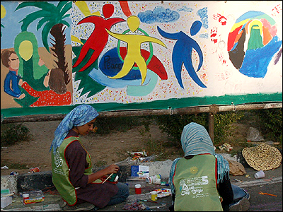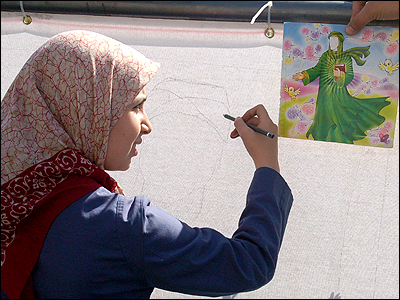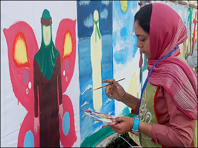 ۳۱ مرداد ۱۳۸۵، نوجوانان ايرانی طی يک برنامه از پيش تعيين شده، آنچه طولانی ترين نقاشی جهان خوانده شده را بر بومی پنج هزار متری در تهران ترسيم کردند. گزارش تصويری زير نگاهی دارد به برگزاری اين برنامه: