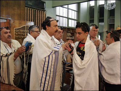 نمازگزار سپس روپوش سفيدرنگی که طليت خوانده می شود به سر می اندازد و تورات در دست گرفته به خواندن دعا مشغول می شود.