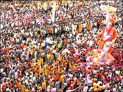 پيروان آئين هندو در شهر بمبئی هند در آخرين روز جشن مذهبی 'گنيش' - خدای ثروت