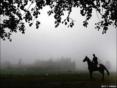 عبور يک اسب سوار در هوای مه گرفته شهر استمفورد بريتانيا، در صبح زود.