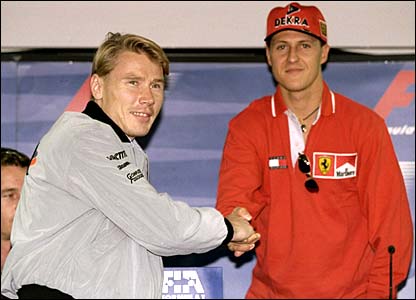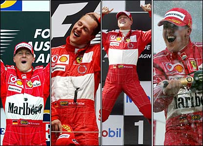 نزديک ترين رقابت او با ديگر راننده های اين مسابقات در سال 2003 و با "کيمی رايکونن" فنلاندی راننده مکلارن بنز و "خوان پابلو مونتويا" راننده کلمبيايی تيم ويليامز بود. او درسال 2003 رکورد چهارمين پيروزی پياپی و ششمين قهرمانی کل اين مسابقات، را از آن خود کرد.