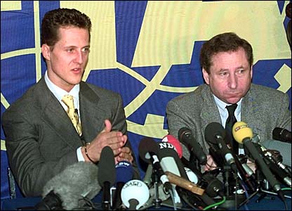 او در سال 1997 تنها چند قدم با قهرمانی کل اين مسابقات فاصله داشت، که با تصميم داوران فدراسيون جهانی اتومبيلرانی، به دليل تصادف عمدی او با "ژاک ويلنوو" راننده کانادايی تيم ويليامز، تمام امتيازات او صلب شد و به هيج مقامی دست نيافت.