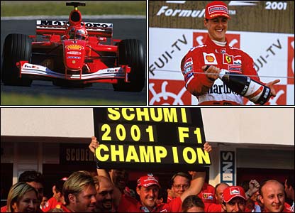 شوماخر در سال 2001 برای دومين سال پياپی همراه تيم فراری به قهرمانی اين مسابقات دست يافت. او در مجموع دو برابر امتياز بيشتر از رقيب خود ديويد کولتهارد در مقام دوم داشت.
