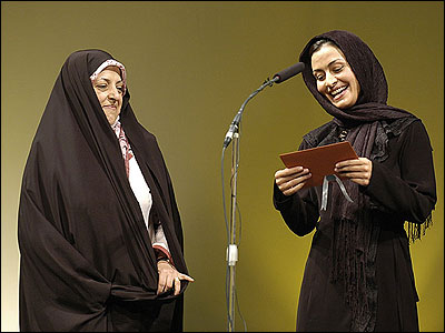 مريلا زارعی (راست) و معصومه ابتكار در حال قرائت نام برنده تنديس بهترين بازيگر زن نقش اول، اين جايزه به هديه تهرانی برای بازی در فيلم "چهارشنبه سوری" اهدا شد