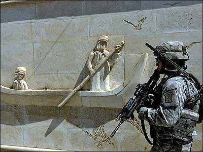 گشتزنی سرباز آمريکايی در شهرصدر مقر گروه مهدی در عراق. نيروهای آمريکايی و عراقی در حال گسترش دامنه گشتزنی ها و جستجوی های خود با هدف برقراری بيشتر امنيت در اين کشور هستند.