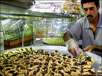 شيرينی پز عراقی برای مشتری های قبل از افطار آماده می شود