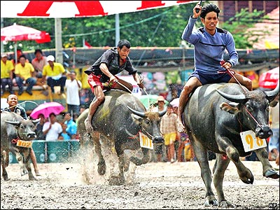 مسابقه گاوميش سواری در استان چاون بری در جنوب بانکوک، تايلند