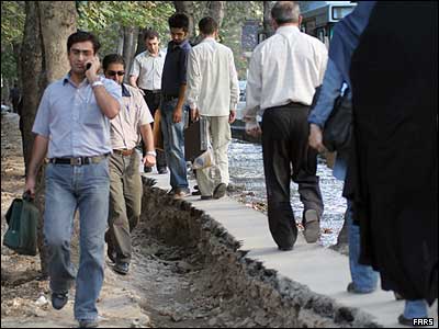 عبور رهگذران در تهران از پیاده رويی در دست تعمیر