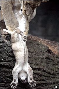 يک شير ماده در حال حمل نوزادش در باغ وحشی در هامبورگ آلمان.