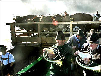 دامداران در استان باواريای آلمان از چراگاه های تابستانی بر می گردند.