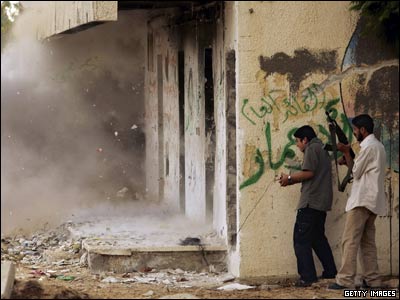 دو جوان وابسته به حماس در حال آموزش نظامی در نوار غزه.