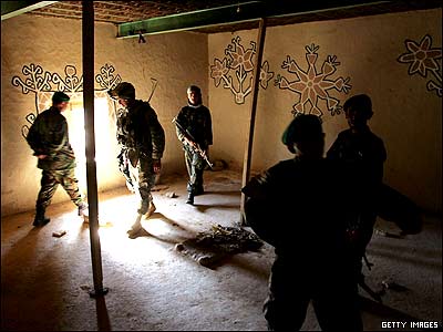 سربازان افغان به همراه يک مشاور نظامی آمريکايی خانه ای را در نزديکی مرز افغانستان و پاکستان جستجو می کنند. اين جستجو در جريان عمليات مشترک نيروهای پاکستانی وافغان در منطقه مرزی ميان ولايت پکتيای افغانستان و ولايت وزيرستان جنوبی پاکستان انجام گرفت.